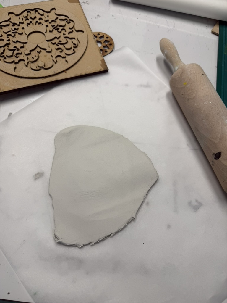 Tijdens de presentatie over de opdracht werden verschillende voorbeelden uit de geschiedenis laten zien: hoe het eruitzag en welke vormen zij hadden. Veel van deze ideeën waren bordjes, bekers of andere kunst. Ik wilde deze keer wat anders maken dan normaal, dus ben ik voor een pizza gegaan.