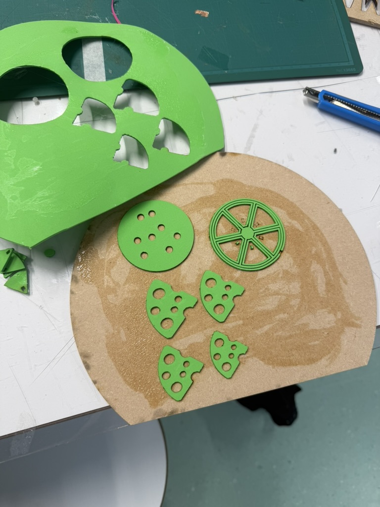 Wel heb ik alvast de rondjes en stukjes kaas uitgesneden met een stanleymesje.