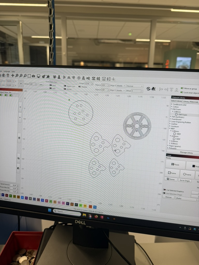- Daarna was het tijd om de vormpjes in te laden in de lasersnijder.